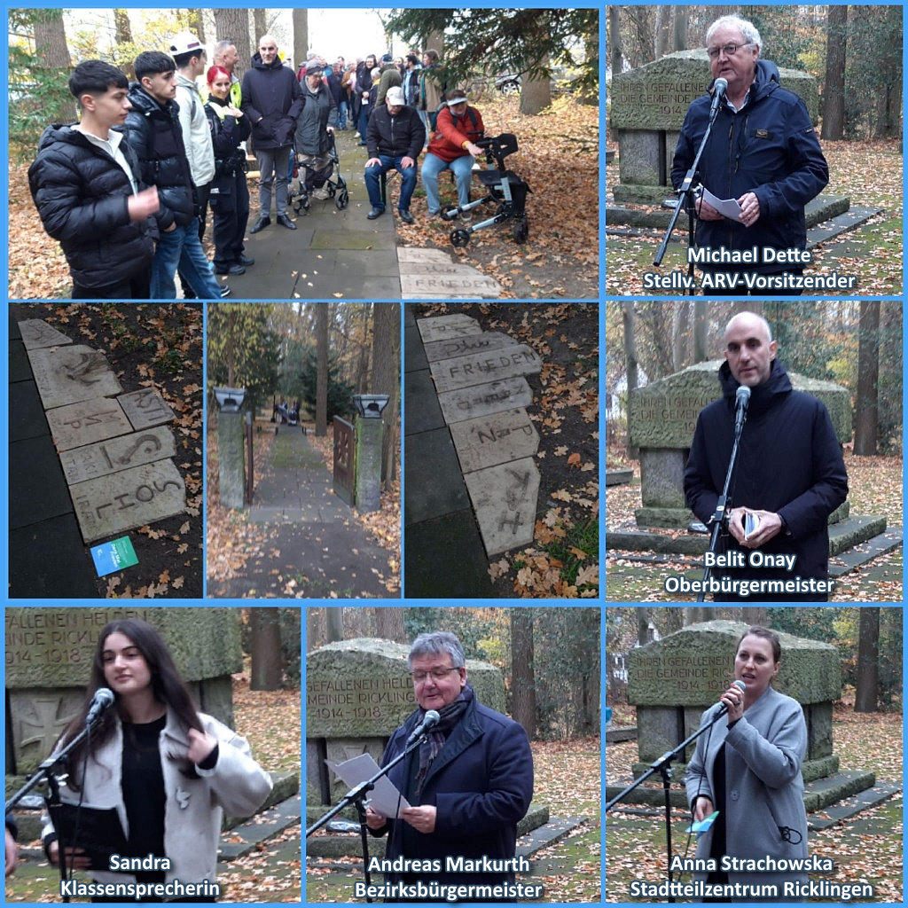 Bei der Gedenkstunde zum Volkstrauertag am 16.11.2025 spricht, nach der Ansprache von Herrn Bezirksbürgermeister Andreas Markurth, Herr Pastor Danilo Paap (Michaelis) die Worte des Gedenkens. Außerdem gibt es einen Beitrag von Schülerinnen und Schülern der Peter-Ustinov-Schule. Das Orchester der Schule begleitet die Gedenkveranstaltung musikalisch. Im Anschluss wird im Ehrenhain ein Kranz niedergelegt.
